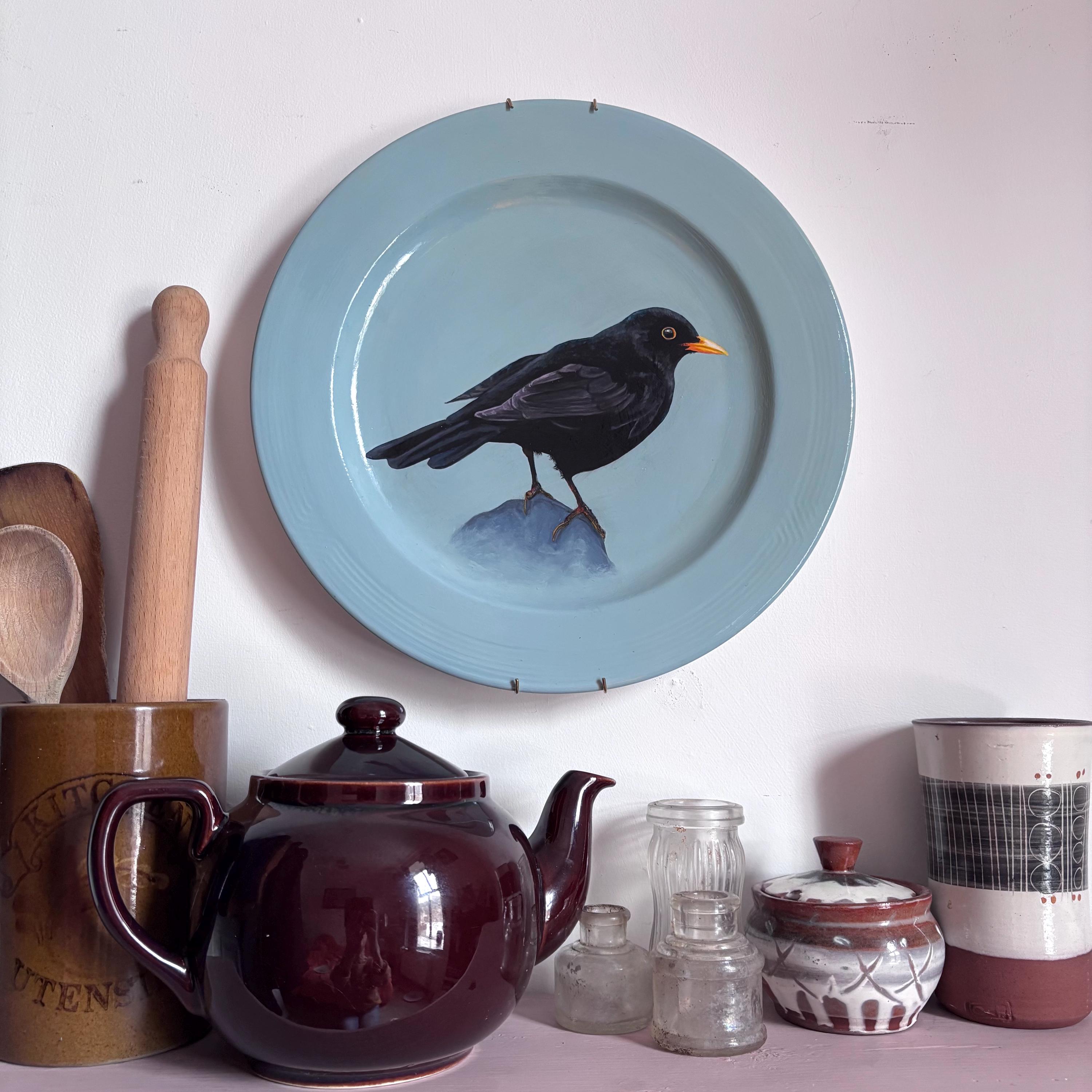 • Acrylic painting on reclaimed ceramic plate. Varnished for protection.